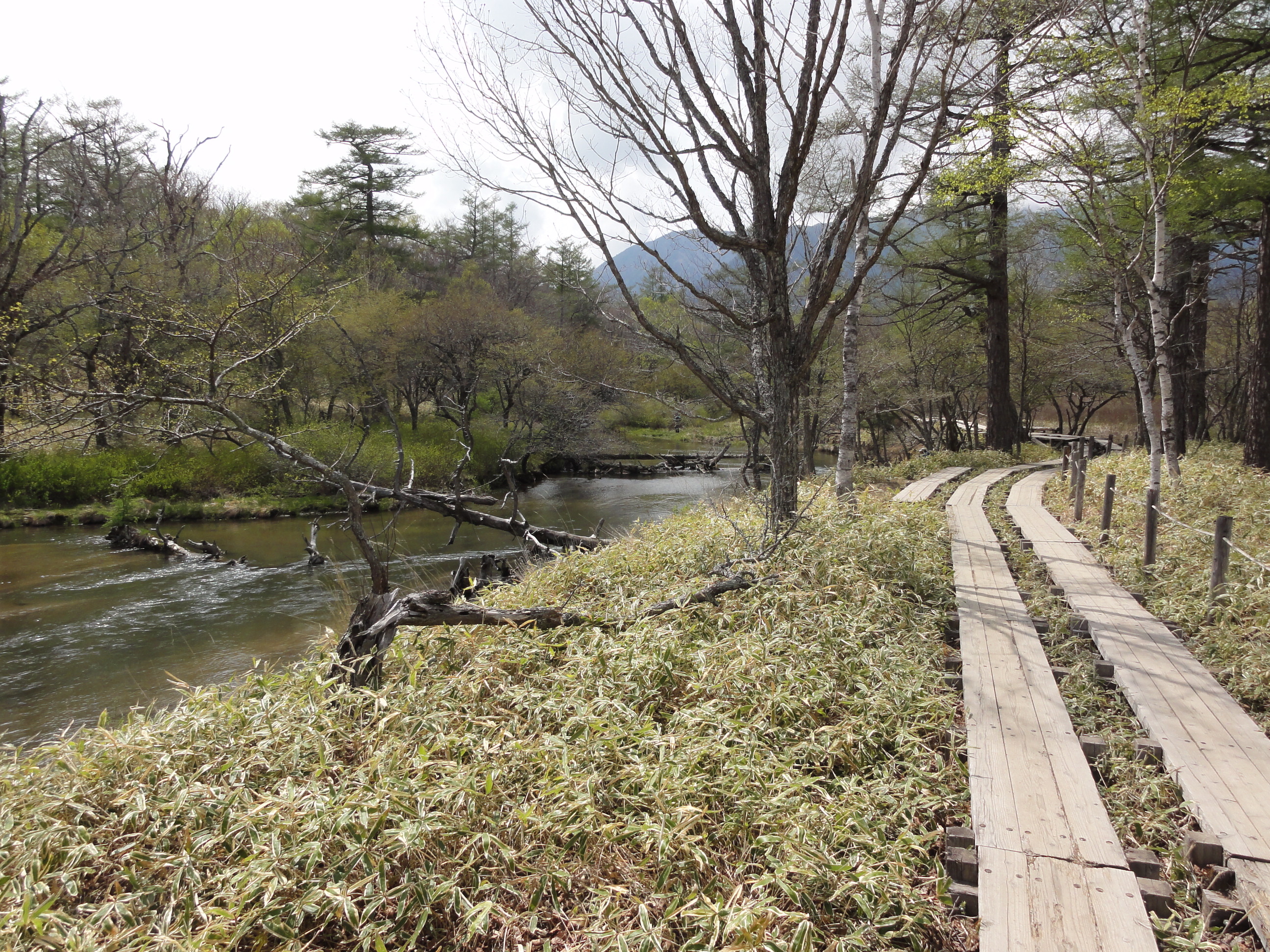 _ 曇の予報だけどまあしかたないか、と日光に向かったら、霧。いろは坂はあたり一面まっしろで何も見えず、引き返して別のところに行こうかどうか迷ったけど、上りきったら男体山の頂上がはっきり見えるほど晴れていた。ありがたい。つーことで、湯元をスタートして湯ノ湖→湯滝→泉門池→小田代ヶ原→高山→中禅寺湖→竜頭滝→戦場ヶ原というコースで歩いてみた。15km ぐらいかな。季節が早すぎてまだ湿原は枯れ草ばかりだったけど、来る前からわかってたので、まあ気にしない。ツツジやシャクナゲがいい感じで咲いてたけど、そんなに群生してるわけでもないし。これまで何度も来てるしこれからも何度も行くだろうしね。
