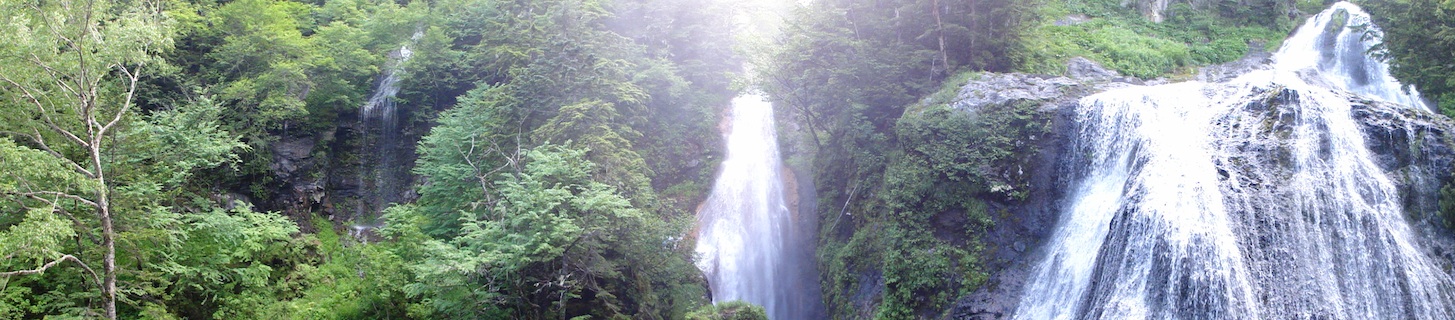 _ バスの時間まで お花畑を散歩した後、麓に降りて 三本滝(合成写真じゃないよ)、善五郎の滝を見物して、お風呂。汗を流して出てくると日暮れ。事前の予想どおり、こんな山の中には夜に営業してるレストランもコンビニもなかったので(よくよく探せばあったかもしれんがそこまでする気にはならず)、持参したお料理セットでてきとーに自炊しておやすみなさい。