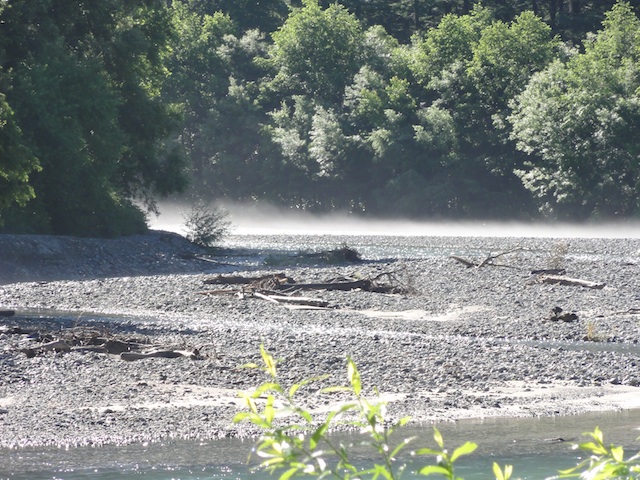 _ 7/18。朝からまたバスに乗るよ。今度の行き先は上高地。 早朝の大正池は朝霧に包まれて幻想的な雰囲気…どころじゃなくて霧が濃すぎてなーんにも見えない。きのうの乗鞍に続いてガッカリお天気か、と嘆きながら歩いているうちに、 だんだん霧が晴れてきて(田代湿原)、 だんだん視界がよくなってきて、そしてそしてしまいには360度まったく雲のない完全な青空! 穂高連峰の山稜がくっきりはっきり見える。ほんとすばらしいお天気でたいへん気持ちいい。陽射しのあるところは景色がよくて気持ちいいし、 木陰はひんやりしててやっぱり気持ちいい。どこをとってもすべてすばらしい。あんまり気持ちいいもんだから、明神橋のそばの日のあたる河原で2時間近くのんびり飯を食ったりお茶したり昼寝したり柳の綿毛が飛ぶ様をぼーっと眺めたりしてたらすっかり日焼けしてしまった。肌がひりひりする。